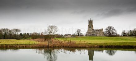 The River Nene rises near Badby, Northamptonshire [Map] from where it flows past Newnham, Northamptonshire [Map], Weedon, Northamptonshire [Map], Nether Heyford, Northamptonshire [Map], Kinslingbury, Northamptonshire [Map], Hunsbury Meadows, Northamptonshire [Map], Northampton [Map], Billing, Northamptonshire [Map], Great Doddinton, Northamptonshire [Map], Rushden, Northamptonshire [Map], Thrapston, Northamptonshire [Map], around Oundle, Northamptonshire [Map], past St Mary and All Saints Church, Fotheringhay [Map] and the remains of Fotheringhay Castle, Northamptonshire [Map], Wansford [Map], through the centre of Peterborough [Map] after which it is canalised to Rings End [Map]. After Rings End [Map] it continues through Wisbech, Cambridgeshire [Map], under Sutton Bridge [Map] after which it reaches The Wash at Guys Head [Map].