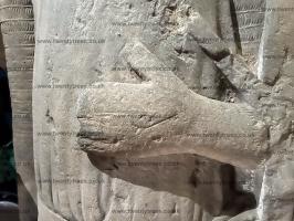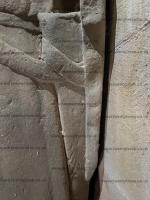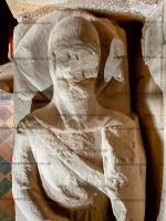 Around 1375. St Mary the Virgin Church, Newton Solney [Map]. Effigy of unknown member of the Solney family. Goat belt buckle. Camail and Jupon Period.