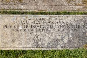 After 1991. St Mary's Church, Nether Alderley [Map]. Grave of Arthur Stanley 5th Baron Stanley, 5th Baron Sheffield, 4th Baron Eddisbury and his daughter Pamela Margaret Stanley (age 81).