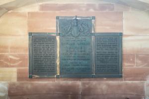 1909. The Stanley Mausoleum, St Mary's Church [Map] was built for the 4th Lord Stanley of Alderley (age 69). The architect was Paul Phipps of London (Father of Joyce Grenfell); it is now a Grade II listed building. It is built of sandstone with a Kerridge stone-slate roof and above the door is the Stanley crest. Below the Mausoleum runs an empty crypt.