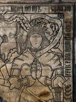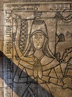 In or after 1485. St Mary's Church, Rolleston on Dove [Map]. Grave slab of John de Rolleston, died 1485, and his wife Margaret Agard of Foston.