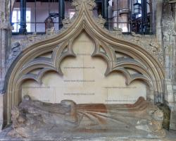 Around 1280. St Mary's Church, Sprotbrough [Map]. Effigy of a Knight in 14th Century cusped, ogee recess. Probably of the Fitzwilliam Family - Fitzwilliam Arms.