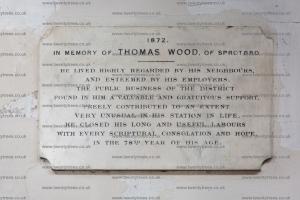 1872. St Mary's Church, Sprotbrough [Map]. Memorial to Thomas Wood of Sprotbrough.