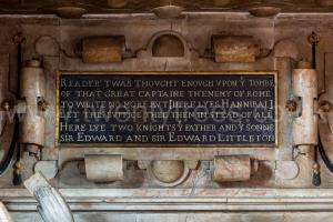 St Michael's Church, Penkridge [Map]. Tomb of two Sir Edwards Littleton, father and grandfather of the first baronet, at St Michael's Church Penkridge. Lower stage: Sir Edward Littleton (d. 1610) and his wife, Margaret Devereux. Upper stage: Sir Edward (d. 1629), and his wife, Mary Fisher.