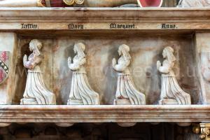 Around 1600. St Michael's Church, Penkridge [Map]. Monument to Edward Littleton of Pillaton Hall and Alice Cockayne (age 65). Sculpted by Richard and Gabriel Royley of Burton upon Trent.