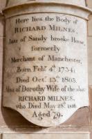 On 6th October 1799 Lieutenant Colonel Philip Bainbrigge (age 44) was killed in action at the Battle of Egmont on Zee at which battle he was commanding the 20th Regiment of Foot. He was buried in the churchyard near the field of battle. Monument in St Oswald's Church, Ashbourne [Map]. Signed Hayward Lichfield - possibly Peter Hayward.