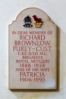 After 1993. Monument to Richard Brownlow Purey-Cust and Patricia Purey-Cust in St Peter and St Paul Church, Belton [Map].