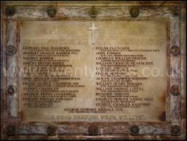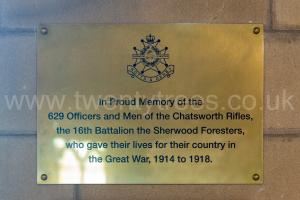 After 1919. St Peter's Church, Edensor [Map]. War Memorial to the Chatsworth Rifles, the 16th Battalion of the Sherwood Foresters.