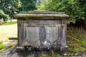 After 1822. Memorial to the Barker family including: husband and wife Alexander Barker of Edensor (age 77) and Elizabeth Bossley of Bakewell, and their sons Caleb Barker and George Alexander Barker all of whom were buried at St Peter's Church, Edensor [Map].