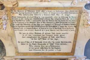William Cust: In 1720 he was born to Richard Cust 2nd Baronet and Anne Brownlow Lady Cust. On 8th March 1748 William Cust was killed by a cannon-ball whilst leading the attack on Port Louis on HMS Elizabeth.