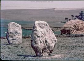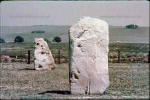 Keiller's Slides TR000010. General view of stones 13a and 13b [Map] in West Kennet Avenue, showing the west faces.