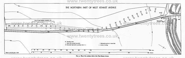 Antiquity 1936 Volume 10 Issue 40 Pages 417-427. Excavations in the West Kennet Avenue were begun in 1934 by The Morven Institute of Archaeological Research under the joint direction of the writers. The primary purpose of these excavations was to establish the exact course followed by the avenue, and furthermore, if possible, to arrive at a definite date and culture for the construction of the monument. The opportunity was taken by the excavators of re-erecting all fallen stones, and stones which, as will be later described, were found to have been buried (FIG. 11). The entire course of the northern third of the avenue had been exposed by the end of 1935. Prior to excavation the only visible signs existing, for even the approximate course of this part of the avenue, consisted of three standing stones and nine others which were lying prone; a tenth had fallen and had been re-erected in 1912, but in an incorrect position as well as upside down.2 The evidence on which the excavators relied was naturally the discovery of the stoneholes or sockets in which stones had stood. All except one of these were satisfactorily identified; in the case of this stonehole (no. 15)3 there is no reason to suppose that no stone stood between nos. 13 and 17, but it may be presumed that the stonehole was so shallow as not to penetrate the subsoil.