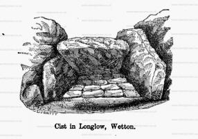 Thomas Bateman 1845. The first tumulus opened this year in Staffordshire was a barrow [Note. Possibly Wetton aka Taylor's Low [Map] but it is less than half a mile from Wetton.] about a mile from Wetton, commonly known as Taylor's Lowe and it furnished the subject of the frontispiece of "Barrow-digging, by a Barrow-knight" which is a faithful delineation of the scene on the 28th of May, 1845. About two feet from the surface of the barrow was a cist, formed of thin, flat limestones, containing the skeleton of a young person, probably a female, the knees, as is frequently the case in the more ancient barrows, being contracted. About eighteen inches from the surface, on the north side of the tumulus, was another skeleton; deeper down a small octagonal cist, containing a simple deposit of burnt human bones, was erected over a human skeleton, which lay in a large square cist, cut in the rock, thus presenting the anomalous appearance of a cist within a cist. There was nothing found with any of these interments; a few flint instruments and a small piece of an urn only occurring promiscuously. The most remarkable circumstance attending this barrow was, that although each skeleton was quite undisturbed, yet all the heads which lay towards the interior of the mound had been destroyed, by the central part of the tumulus having been some years ago removed, in order form a limekiln.