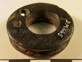 Wiltshire Museum. DZSWS:STHEAD.178. 1 shale belt ring with a single groove around edge and a perforation through side (+ another attempted hole), found with a primary inhumation in bowl barrow Winterbourne Stoke G54 [Map], excavated by William Cunnington.