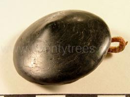 Wiltshire Museum. DZSWS:STHEAD.210. 1 conical v-perforated shale button, found with a primary inhumation in bowl barrow Winterbourne Stoke G54 [Map], excavated by William Cunnington.