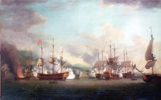 August 1702. The West Indies Action was a naval engagement between the English West-Indies Fleet commanded by Vice Admiral John Benbow (age 49) and the French Fleet commanded by Admiral Jean du Casse (age 55). The action lasted five days during with the English eventually being beaten off and Vice Admiral John Benbow being mortally wounded. The action was notable for a number of English ships refusing to engage with the French. Following the action the English Fleet returned to Port Royal where a number of captains were court-martialed for cowardice and disobedience. Found guilty Captains Richard Kirkby and Copper Wade were returned to Plymouth, Devon [Map] where they were shot aboard Bristol in the presence of other officers. Captain Constable was cleared of the charge of cowardice, but was convicted on other charges and cashiered. Captain Hudson died before he could be tried. Captains Fogg and Vincent were charged with having signed a paper with the other captains of the squadron, stating they would not fight, but they represented this as a device to keep Captain Kirkby from deserting; Benbow testifying in their favour, they were merely suspended.