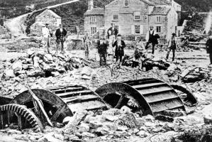 On 11th March 1864, at nearly midnight the Dale Dyke Dam broke as its reservoir was being filled for the first time. At least 240 people died and more than 600 houses were damaged or destroyed by the flood. An estimated 3 million cubic metres of water swept down the Loxley Valley, through Loxley Village and on to Malin Bridge and Hillsborough, where the River Loxley joins the River Don. The flood continued south down the Don into Sheffield centre, around the eastward bend of the Don at Lady's Bridge, then to Attercliffe. The centre of the town, situated on the hill to the south, escaped damage, but the densely populated district of the Wicker, around the new railway viaduct was completely destroyed.