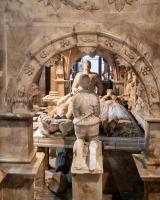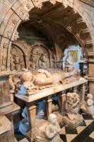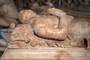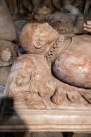 The chest tomb of exceptional quality with the fifteen weepers under crocketed canopies broadly undamaged. The weepers on the sides are believed to represent Thomas and Editha's children, possibly fourteen, and their respective spouses. The chest tomb now abuts the south wall of the chancel meaning only three sides visible.