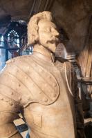 Fluted armour typified by having no headwear, being clean shaven, a breastplate in two pieces and the neck protected by a Standard. Damaged angel, its head removed, holding the cushion on which his head rests. He wearing a Lancastrian Esses Collar with large Esses. Ringed fingers.