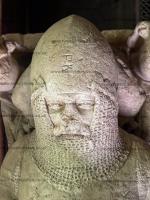 After 21st July 1403 Thomas Wendesley was buried at All Saint's Church, Bakewell, Derbyshire. Camail and Jupon Period armour. IHC NASARE Lettering. His Coat of Arms just visible. Lancastrian Esses Collar.