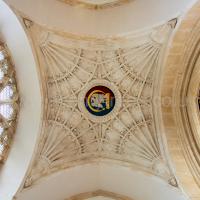 Around 1460. The Falcon and Fetterlock Yorkist emblem at St Mary and All Saints Church, Fotheringhay [Map].