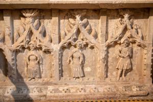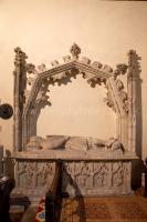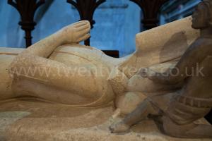 The chest tomb of exceptional quality with the fifteen weepers under crocketed canopies broadly undamaged. The weepers on the sides are believed to represent Thomas and Editha's children, possibly fourteen, and their respective spouses. The chest tomb now abuts the south wall of the chancel meaning only three sides visible.