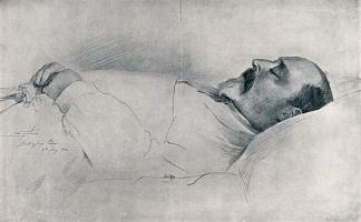 1911. Luke Fildes (age 67). Drawing of King Edward VII of the United Kingdom on his deathbed.
