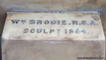 Sculpted by John Steell (age 45), 1850. See Captain Keogh's Diary, The Edinburgh Medical and Surgical Journal, Volume 76 and The Asiatic Journal and Montly Miscellany