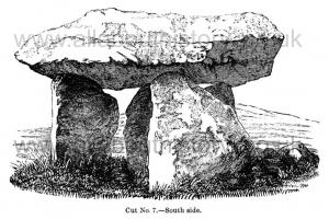 Archaeologia Cambrensis 1872 Pages 81-143. Cut No. 7 represents the south or nearly south side of the Dolwilym chamber [Gwal y Filiast Burial Chamber [Map]]. The gap at the south-west corner was originally filled up by a slab, as already observed.