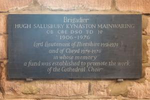 After 1976. St Asaph Cathedral [Map]. Memorial to Hugh Salusbury Kynaston Mainwaring 1906-1976.