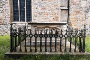 After 1894. St Mary's Churchyard, Chirk. Grave of Arthur Edwin Hill aka Hill-Trevor 1st Baron Trevor (age 74) and Mary Catherine Curzon Baroness Trevor (age 56).