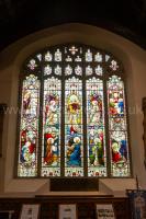 After 1911 St Mary's Church, Chirk [Map]. Window by Burlison and Grylls, commemorating the Hill-Trevor family including Mary Catherine Curzon Baroness Trevor (age 73), Charles Edwin Hlll Trevor 4th Baron Trevor and Nevill Edwin Hill-Trevor.