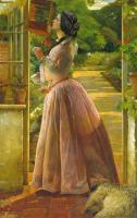 "Deverell accompanied his mother one day to a milliner's. Through an open door he saw a girl working with her needle; he got his mother to ask her to sit to him. She was the future Mrs. Rossetti. Millais painted her for his Ophelia— wonderfully like her. She was tall and slender, with red coppery hair and bright consumptive complexion, though in these early years she had no striking signs of ill health. She was exceedingly quiet, speaking very little. She had read Tennyson, having first come to know something about him by finding one or two of his poems on a piece of paper which she brought home to her mother wrapped round a pat of butter. Rossetti taught her to draw. She used to be drawing while sitting to him. Her drawings were beautiful, but without force. They were feminine likenesses of his own."