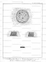 Fig. (a) in Pl. XLVIII is a plan of the barrow after I had cleared away more of the sides; circumference one hundred and sixty-one feet. It had been raised to a considerable height, and formed with lime-stones of various sizes, mixed with a very fine dry mould. In the bottom at (b) and (c) are two kistvaens; (b) is cut into the solid rock, which incloses three ssides, on the other is a flat stone, and one of the same kind was placed on the top; the kistvaen (c), which, is rather smaller than the other, was formed in the natural soil, with flat stones fixed in the sides, and one in the bottom. See a perspective view of these at (d and e).