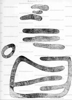 Examining very narrowly, with a candle in my hand, all the parts of this cemetery, I discovered on the flat stone which forms the north side of the left hand nich, what I took to be the traces of letters. Their form is given in the wooden cut annexed. These lines were of a breadth and depth in which I could lay the nail of my little finger; and of different lengths from two to fix inches! I tried for some time to assign, if, possible, these letters to some known alphabet, by comparing them particularly with that of the Beth-luis-nion, or old Irish alphabet; but this produced nothing satisfactory. As I had continued in this cave a much longer time than was prudent, by which I caught a violent illness; and as the tracing these lines with greater accuracy, would take up more time than I could then give to it, I gave over the talk, referring it to be done at leisure by the surveyor, whom Dr. Norris was so good as to engage. Mr. Bovie accordingly traced this supposed inscription; and, as it appears to me, faithfully, and with due care. The several copies which came from his hands at different times vary somewhat; but the variations are such, as rather mark than discredit the copyist's attention. However, to fix this matter with as much accuracy as could be, I directed a facsimile to be taken by impression. That which is here represented is what Mr. Bovie sent as such. I hope it is exact, as I have done every thing in my power that it should be so.