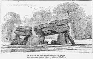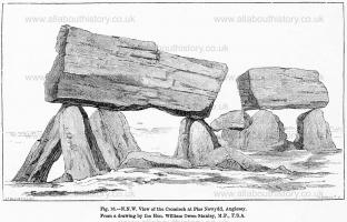 Note 4. Lewis Morris, in his account of Holyhead Church addressed to Browne Willis about 1710, remarks that "at a place called Treviorweth, in this parish there is a cromlech composed after a very artificial manner, and seems to be three monuments erectsd over the graves of some great men," Cambr. Register, vol. iii. p. 216.