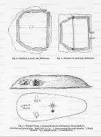 Of late attention has been called to such perforations occurring in the front or side-stones of sepulchral chambers in India and other parts. I have endeavoured to ascertain how many similar structures are to be found in this country. I am indebted to my relation, Mr. Albert Way, for a reference to the account of one presenting the same peculiarities of form and structure. It has been published in the Proceedings of the Society of Antiquaries1, in the description given by the Rev. S. Lysons of a chambered tumulus at Ilodmarton, Gloucestershire. This mound is of a kind known as "long barrows." Its imensions are as follow: length, 176 ft.; width, 71 ft.; height, 10 ft. (See ground-plan, fig. 5, also plans of the chambers, figs. 6, 7.) The entrance to the north chamber was closed, nearly to the roof, by a barrier of two stones placed side by side, upright, in the ground, and hollowed out on their two inner and adjoining edges, so as to leave a sort of porthole of an oval shape (woodcut, fig. 8). In some instances, as at Uley, Gloucestershire (fig. 9), there is a doorway with jambs and a horizontal slab.