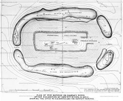 Plan of Wor Barrow on Handley Down after Excavation by General Pitt-Rivers in 1893-4 showing the Ditch re-excavated and the barrow removed.