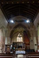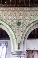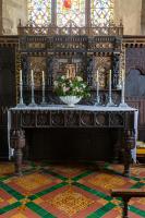 From 1873 the interior of St James' Church, Kinnersley [Map] was revised by George Frederick Bodley (age 45) working with the the Reverend Frederick Andrews. Reredos by George Frederick Bodley. Altar Jacobean.