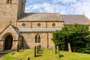 Exterior of All Saints Church, Harmston [Map]. C11, C12, C18 and C19. Coursed rubble with ashlar dresings. Norman west tower the only remains of the medieval church which was rebuilt in 1717, and then largely rebuilt again in 1868 by the architect Withers.