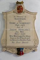 After 1936. All Saints Church, Maiden Bradley [Map]. Monument to Algernon St Maur 15th Duke of Somerset and Susan Margaret Richards Mackinnon Duchess Somerset (deceased).
