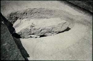 1938-39. Alexander Keiller's Slides. General view of the excavation of Stone 4 [Map] in the south west sector of the henge at Avebury showig the inner face.