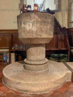 Font at Church of St Giles, Marston Montgomery [Map]. 12th Century.