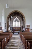 Around 1450. Parish [Map] church C15 and 1824, uncoursed flint with some Sandringham sandstone and carstone, stone dressings, pantiles. West tower, nave incorporating former south aisle, chancel, north chapel to chancel. 3-stage tower c1434, diagonal buttresses with flushwork, brick embattled parapet.