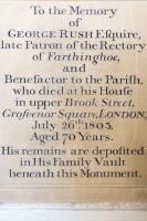 After 1806 . Monument to George Rush died 1806 by Charles Regnart (age 47) in Church of St Michael, Farthinghoe [Map].