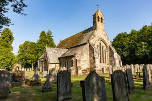 Exterior and churchyard of St Mungo's Church, Simonburn [Map].