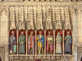 Nave Screen at St Albans Cathedral [Map]. In 2015 seven new painted stone statues by Rory Young were installed in the medieval niches in the nave screen.
