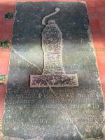 St Albans Cathedral [Map]. Ledger stone originally containing a brass to Mathew Hubbard, Alderman of St Albans, died 11th July 1713 aged 53, and Mary his wife.