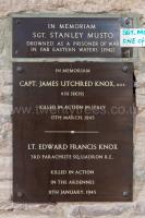 1942. St Andrew's Church, Bredwardine [Map]. Memorials to soldiers who died in World War II. The top memorial being a reference to the LIsbon Maru disaster. On her final voyage, Lisbon Maru was being used to transport prisoners of war between Hong Kong and Japan when it was torpedoed on 1 October 1942, sinking with a loss of over 800 British lives.