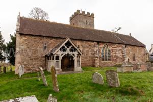 . Originally Anglo-Saxon, the current nave of St Andrew's Church, Bredwardine [Map] was constructed around 1080. The early church was believed to have a central tower but this and the original chancel were destroyed. There is a pronounced kink between nave and chancel.